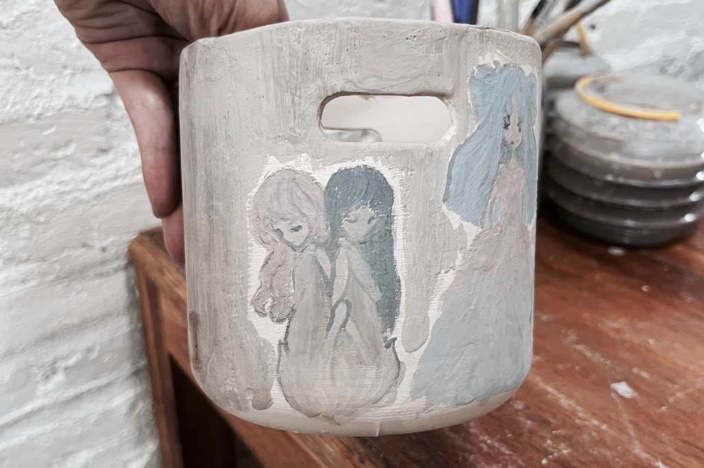The ceramic jar I painted in July has arrived! The shop sends the ceramic art of their customers to the oven only when the 100th piece is handed to them, that’s why it takes a couple months. It’s transformed. > < It’s so glossy now!